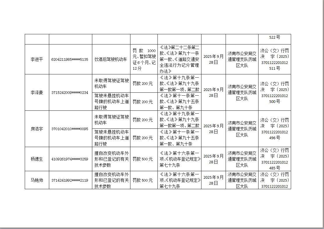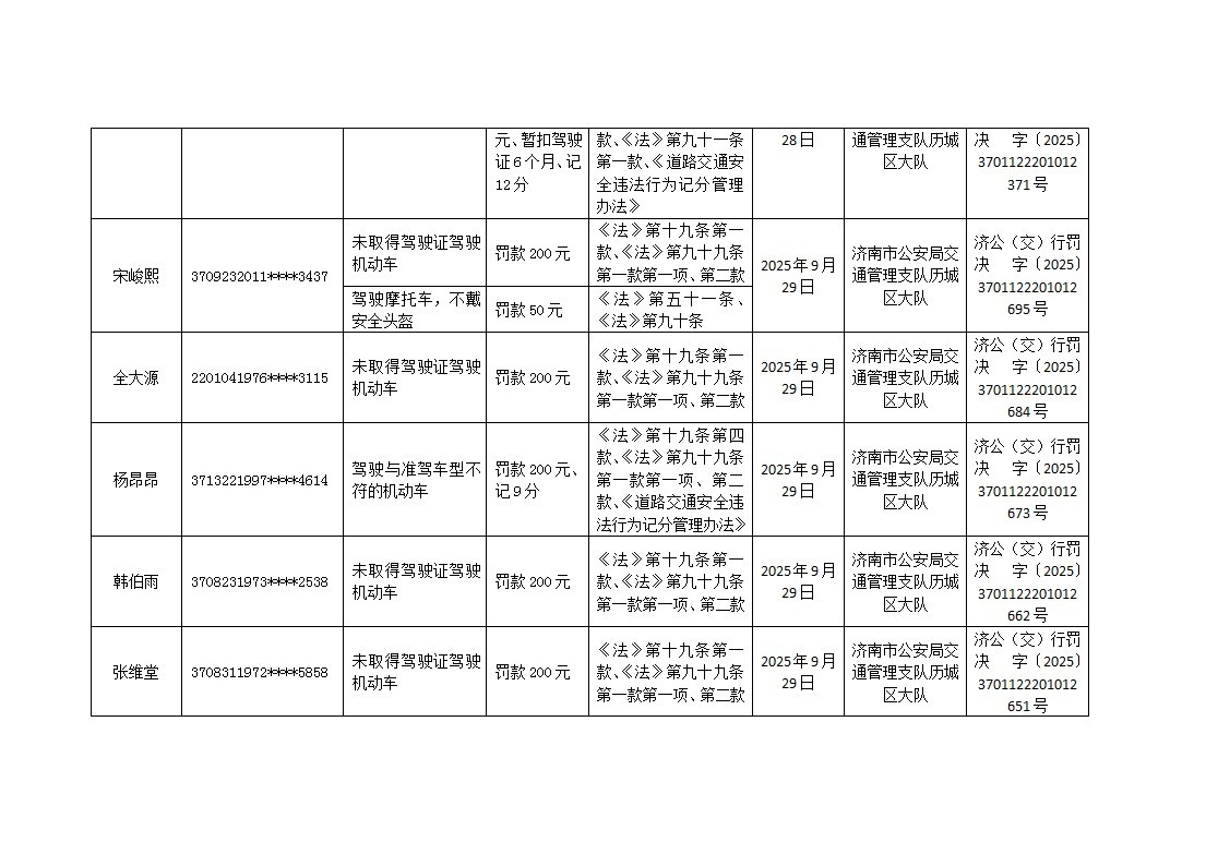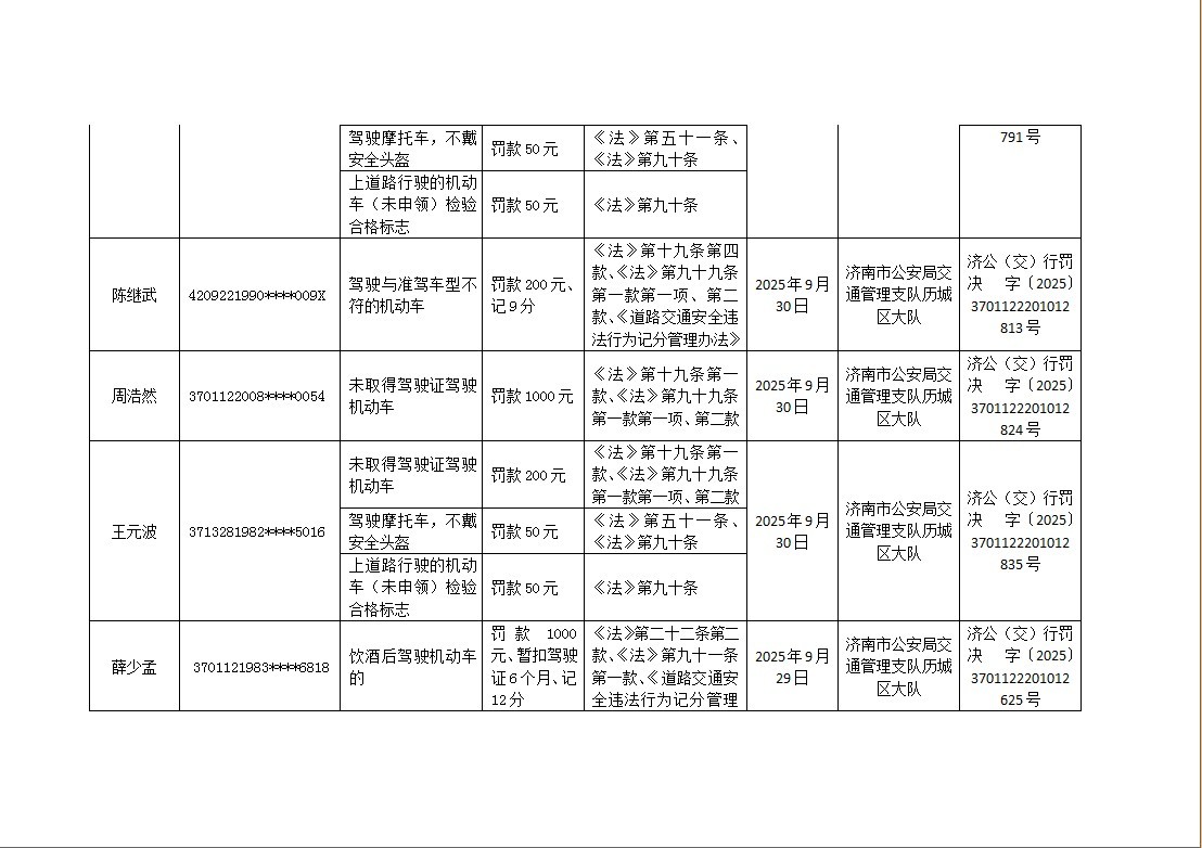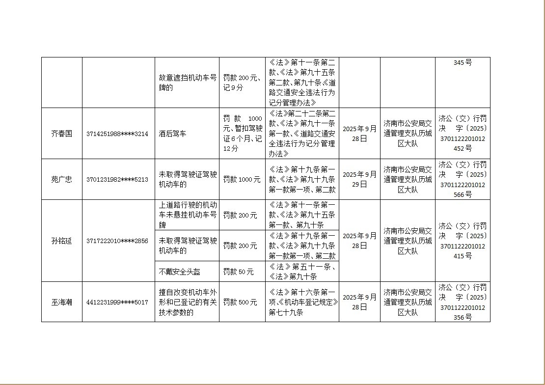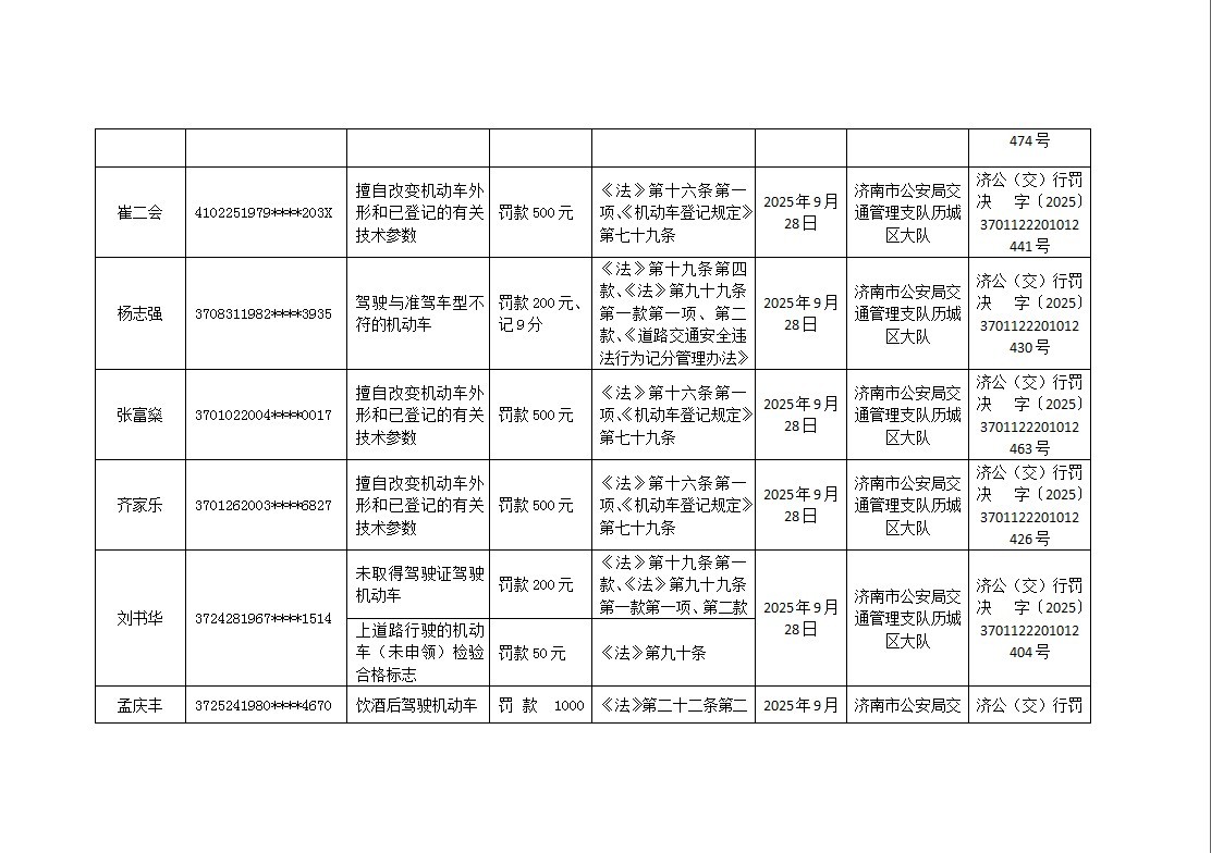 济南市公安局交通管理支队关于送达行政处罚决定的公告