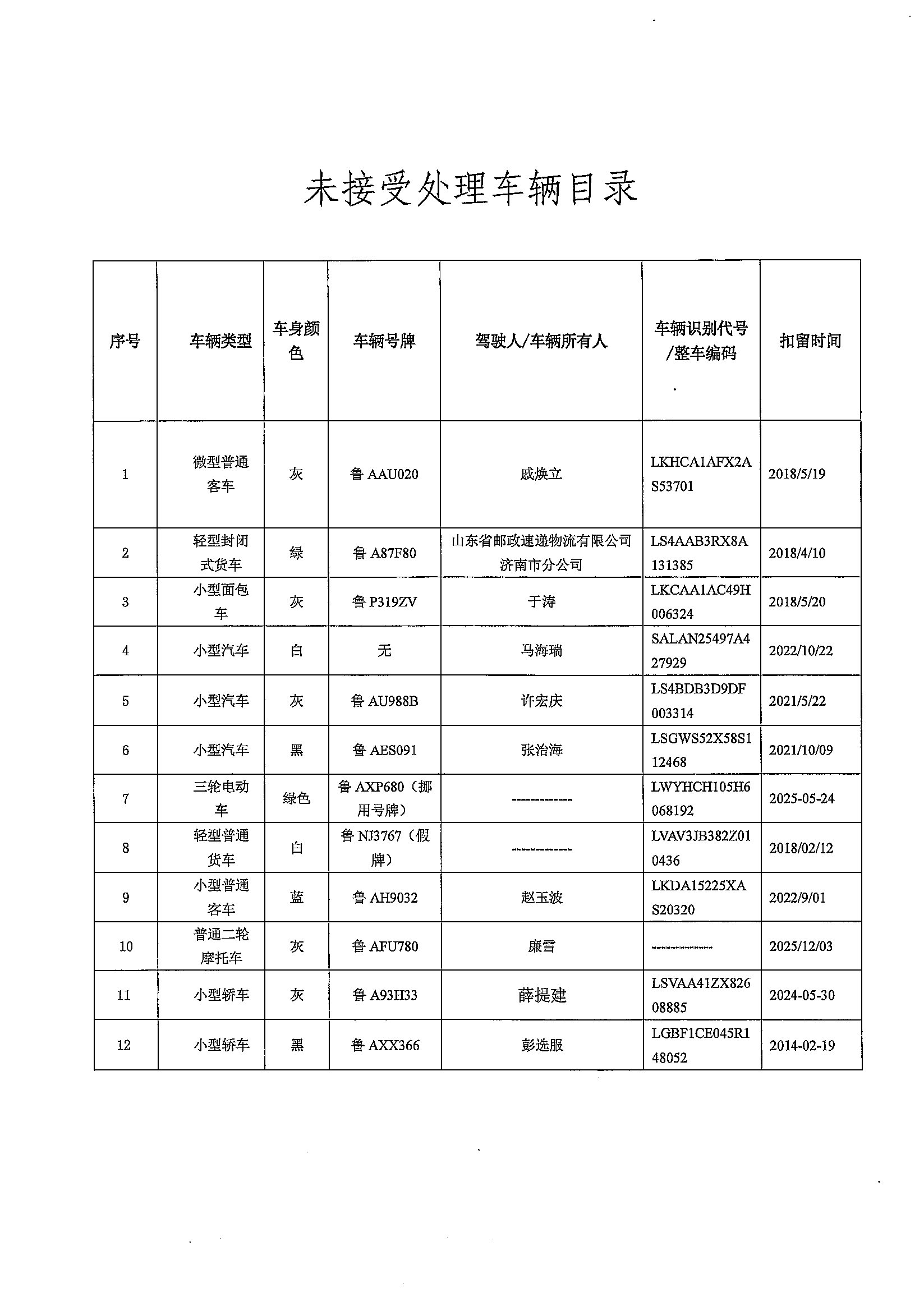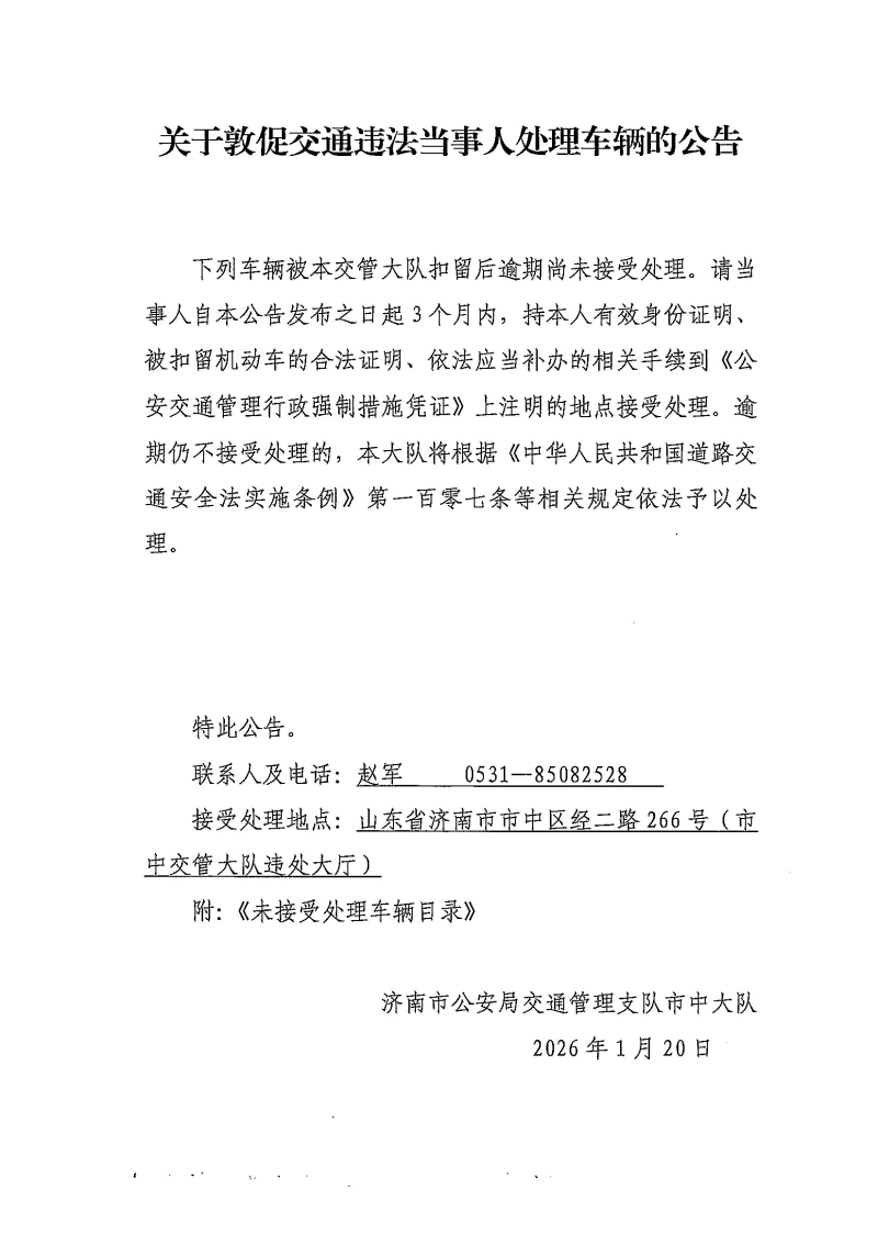 关于敦促交通违法当事人处理车辆的公告