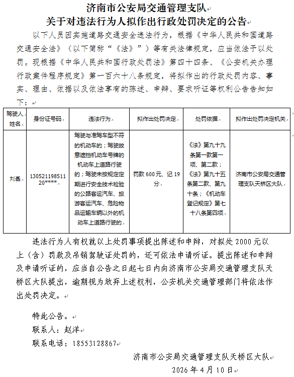 济南市公安局交通管理支队关于对违法行为人拟作出行政处罚决定的公告