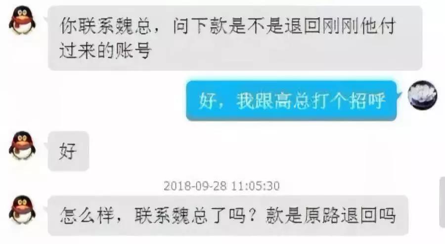 要求财务用公司账户退回钱款,实施诈骗!