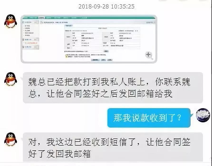 近日,烟台某科技有限公司财务人员小张接到其老板"曲总"的QQ留言,"曲总"称自己正在开会不方便接听电话,并称有一笔48万元的合同预付金要打到公司账户,需要小张查收。稍后"曲总"称对方已将48万元打到自己的私人账户,并发来”转账凭证“,但对方对合同款项有异议不同意签订,为不影响今后合作,要求小张先通过公司账户把48万元退还至对方账户,等自己回公司后补齐资金和手续。小张按”曲总“指令操作后,与曲总通电话后发现自己被骗了。
