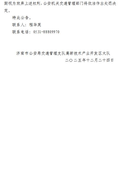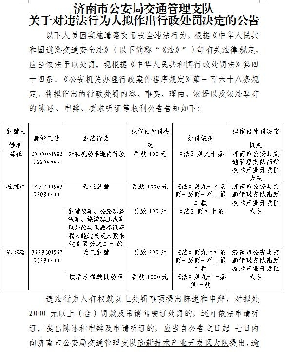 济南市公安局交通管理支队关于对违法行为人拟作出行政处罚决定的公告