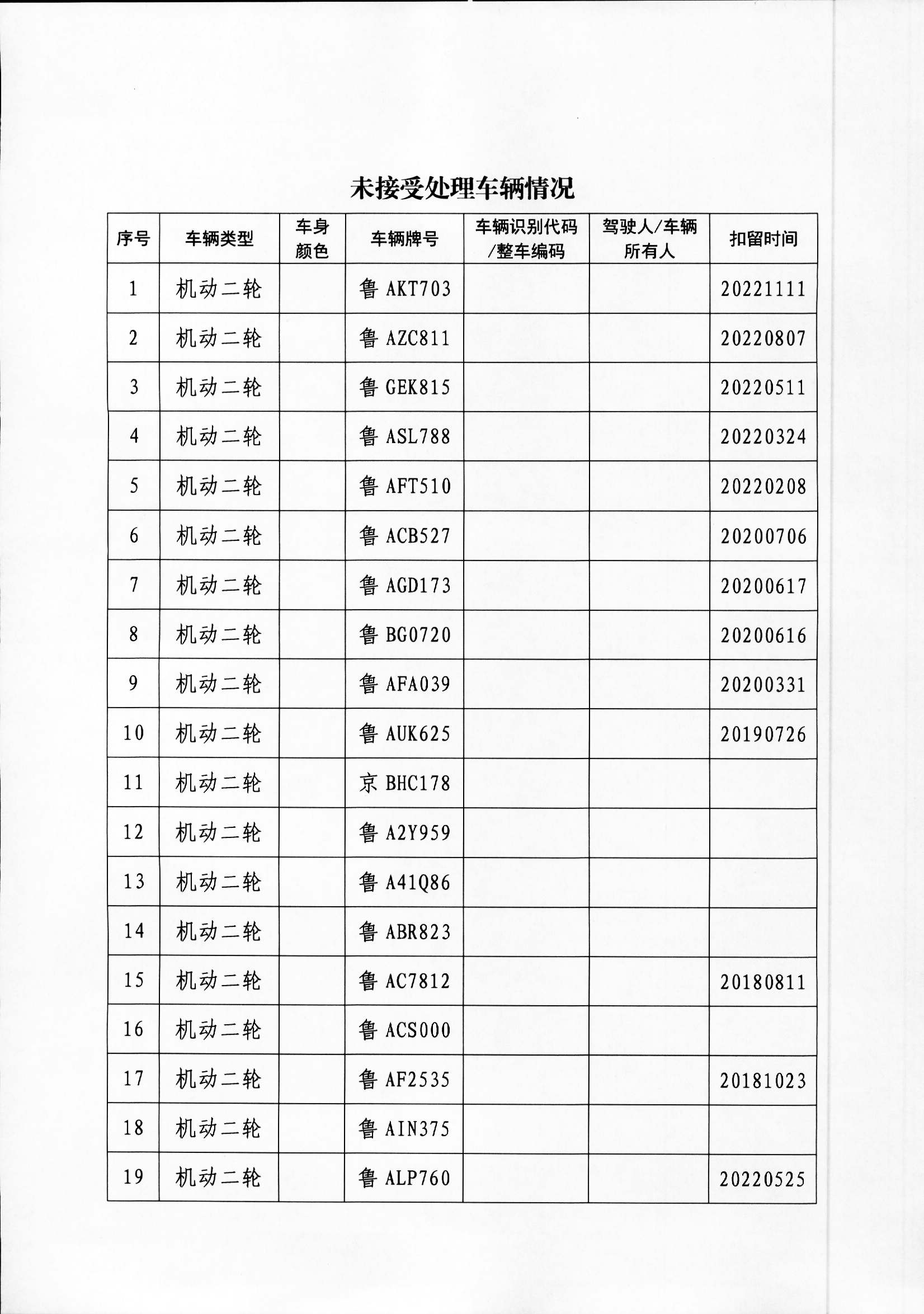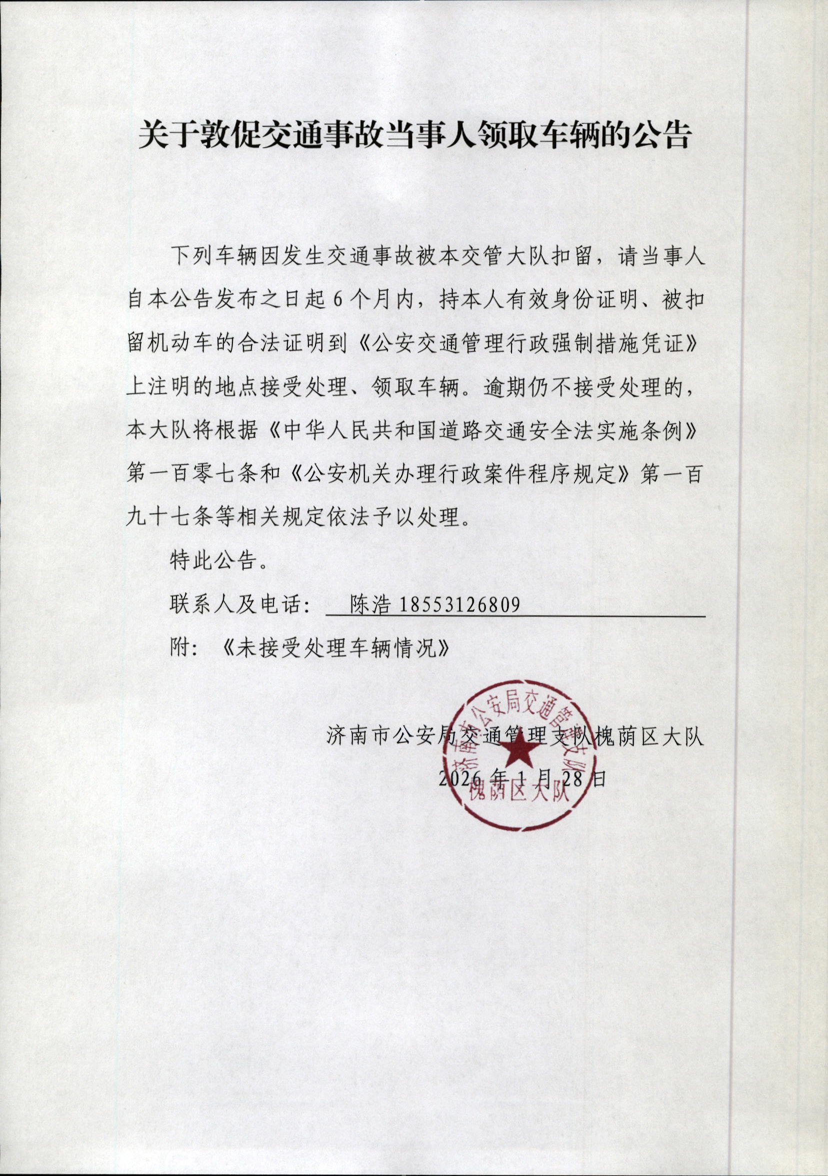 关于敦促交通事故当事人领取车辆的公告